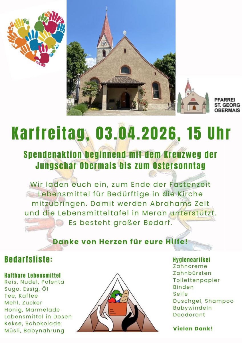 Wir sind dankbar für jede Spende an die Pfarrei St. Georg Obermais.